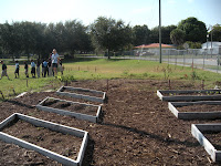 Today we continued the germinating extravaganza, and explored the differences in germinating monocots and dicots. The children were very eager to get started on the activity. We split into two groups with each group germinating corn seeds and bean seeds. The worksheet for the lesson discussed the differences between germinating seeds in soil and in cups with moist paper towels. The word hypothesize was introduced to the kids, and they made excellent guesses as to the differences in germination. We wanted to show what happens inside the seed when it germinates, so we split a germinated seed in half to see the beginning of a stem. After the lesson the kids helped to water the beds and both the watermelon and pinneapple plants. The kids especially love watering the plants and all want to hold the watering can as long as possible. The activity was fun for the kids, but they each wanted to do their own germination. The concepts of monocots and dicots were somewhat hard to convey to some of the kids, but they enjoyed learning how to spell each word.